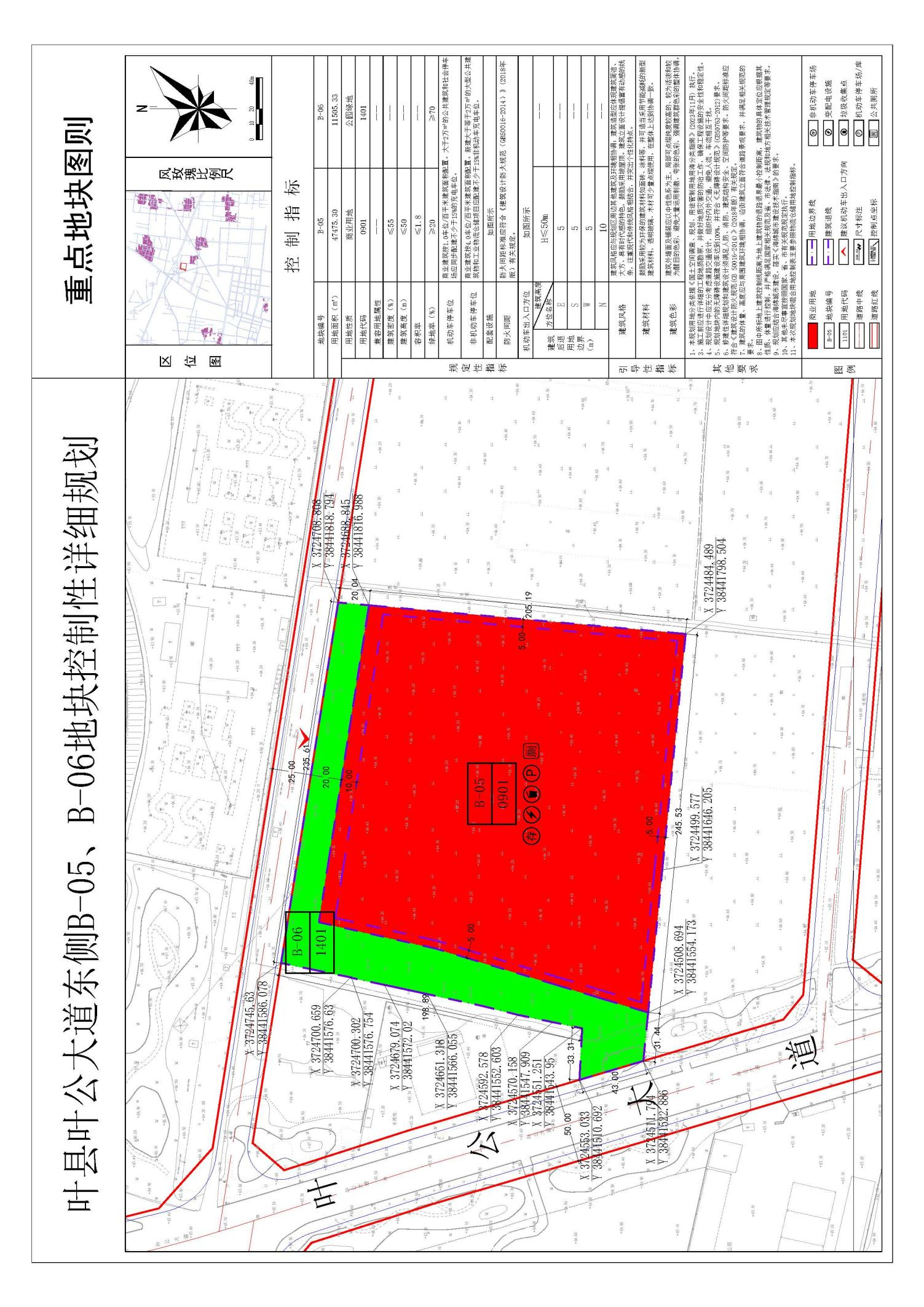 规划B-05地块用地性质为商业用地(0901);规划B-06地块用地性质为公园绿地(1401)。