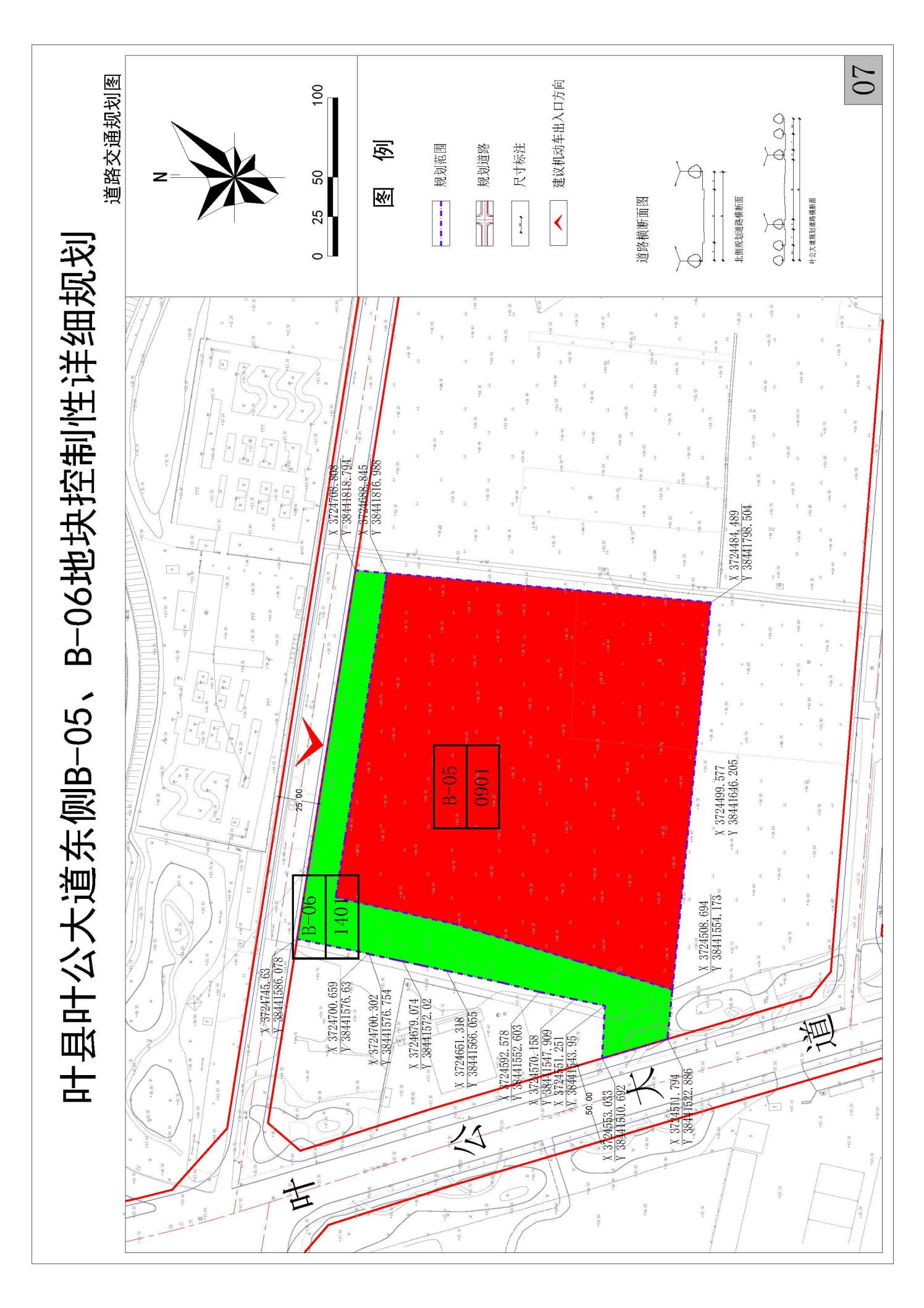 规划B-05地块机动车出入口方位为北向。